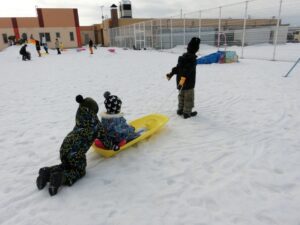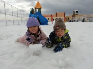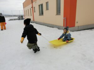 大型そりやスコップ、バケツを貸してもらって思い切り雪遊びを楽しんできました🎵