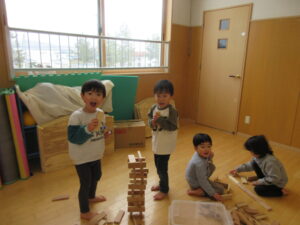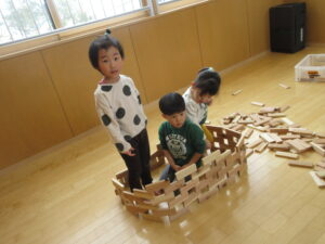 1人で集中して取り組む子、仲良しグループや珍しいグループになってそれぞれ想像したものを協力して形にしています!