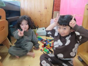 お部屋ではブロックやメルちゃん人形、ラキューを借りてきてお友だちと仲良く過ごしました~!!