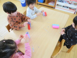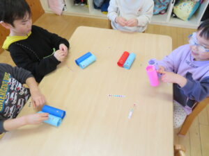 体操・マラソンをして少し体を動かしてからスギックモックを出して遊んでいます✨
