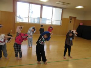 体をほぐした後に、リズムジャンプやドッチボールをしました!