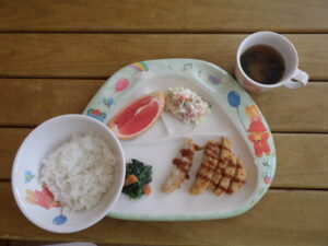 さばの大根サラダ、アスパラソテー、りんご🍎