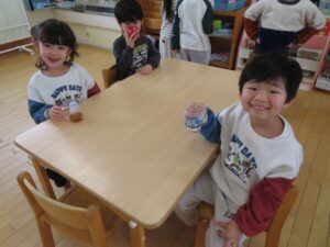 おはようのうたや今月の手遊びを楽しく歌いました。