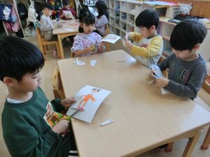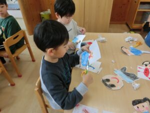 切るのは自分の描いた絵だったり、お友だちの絵だったりでしたが