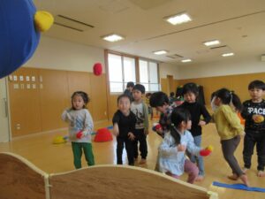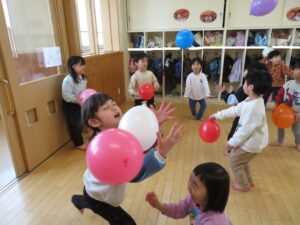 その後は、風船を使って数に合わせて落とさないようにゲームをしたり、