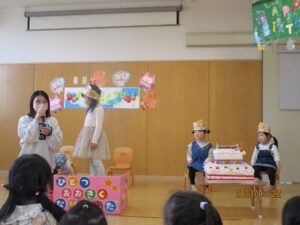 おめでとうの歌も元気いっぱい歌ったり、シルエットクイズも「わかった~!」と自信を持って答え、楽しんでお祝いすることができました(*ノωノ)