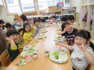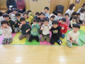 誕生日のお友だちが入場してくると元気に拍手で出迎え、