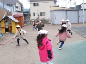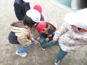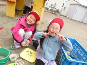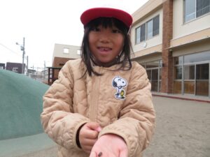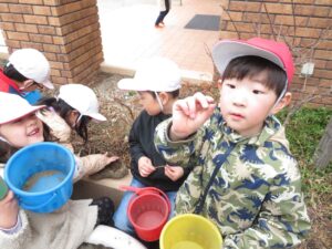 その後は園庭へ行き、鬼ごっこや砂遊び、虫探しを楽しみ、