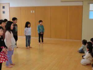 お部屋に戻った後は、一人ずつ前に出てこども園で楽しかったことを発表し合いました😊