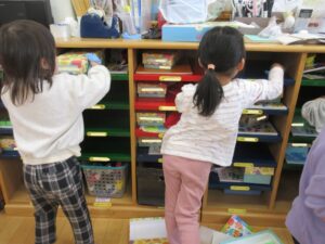 「僕のかばん置くところここだよ!」と