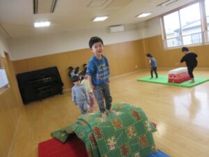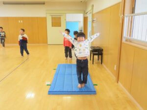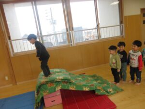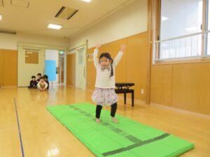 たんぽぽ組さんが後転や逆上がりをすると