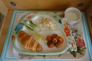 クロワッサン、ミルク、ミートボールのトマト煮、