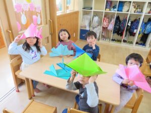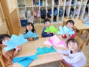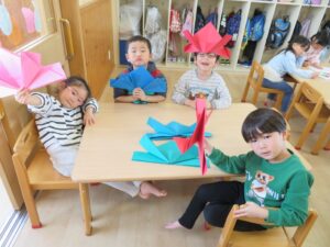 今日は折り紙でこいのぼりを作りました!