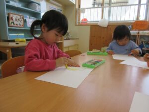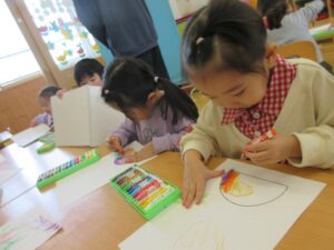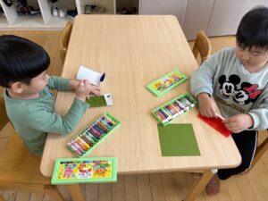 折り紙で形を作ったあとは、クレヨンで目と模様を描きました🎏