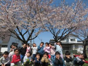 帰りは3丁目公園に寄りみんなで桜の木の下でパシャリ📸