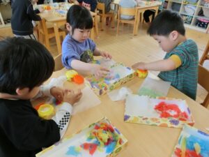 「手にくっついて難しい~💦」と言いながらも一生懸命頑張っていました😊