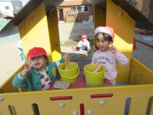 お友だちと一緒に砂でお店屋さん遊びを楽しんでいました✨