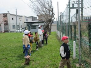 いさりび鉄道や貨物列車が通ると線路の方へみんなで集まり「バイバーイ」と手を振って見送っていました。