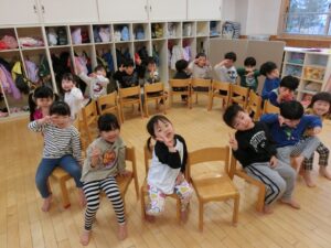 惜しくも座れなかった子は元気いっぱい応援したり、