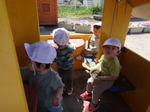 天気が良い日が続き、散歩や園庭で遊ぶことが多くなりました。園庭でじっくりと砂遊びや家型遊具の中で遊んだり、小石ブームが訪れ、小石を集めて見せ合う子が増えてきました✨