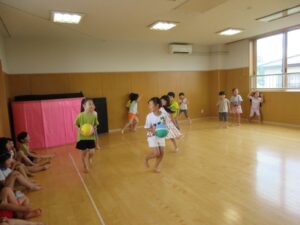 ホールでは、先生達とドッチボール対決をしたり転がしドッチボールを楽しみました!
