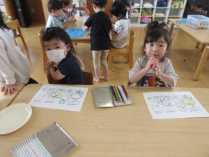 たんぽぽさんは「昨日のおまつりごっこ楽しかった~」「またやりたいね!」と話しながら昨日のわくわく会の余韻を楽しんでいます🎵