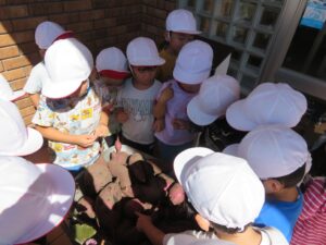 「おおきい!」「バナナみたい」と興味津々で見ていました。