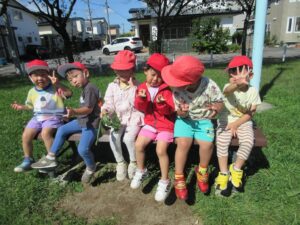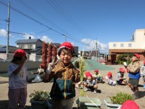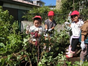 たんぽぽ組さんが収穫したななちゃん畑のサツマイモを発見🍠✨