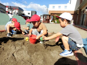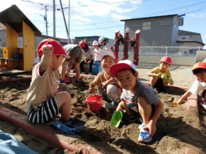 今日は朝から園庭で鬼ごっこや砂場遊びなどを楽しみました(^▽^)/