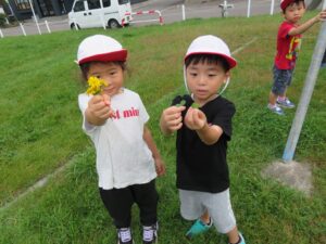たんぽぽやシロツメクサを見つけ園まで大事に持ち帰っていました♪♪