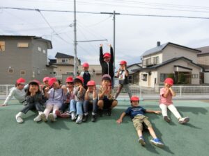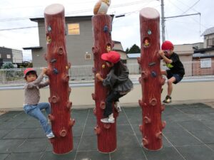 滑り台やブランコで遊んだり、友だちや保育者と一緒に鬼ごっこを楽しんでいました。