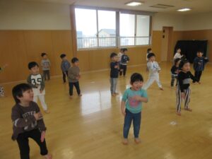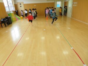 左右の足を変えて音楽に合わせて行いました。