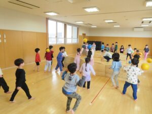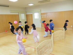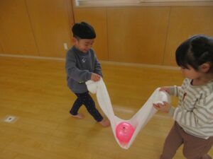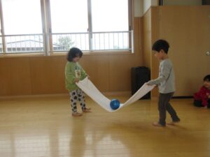 すみれ組と一緒にやるときはタオルを大きく使ってボールが