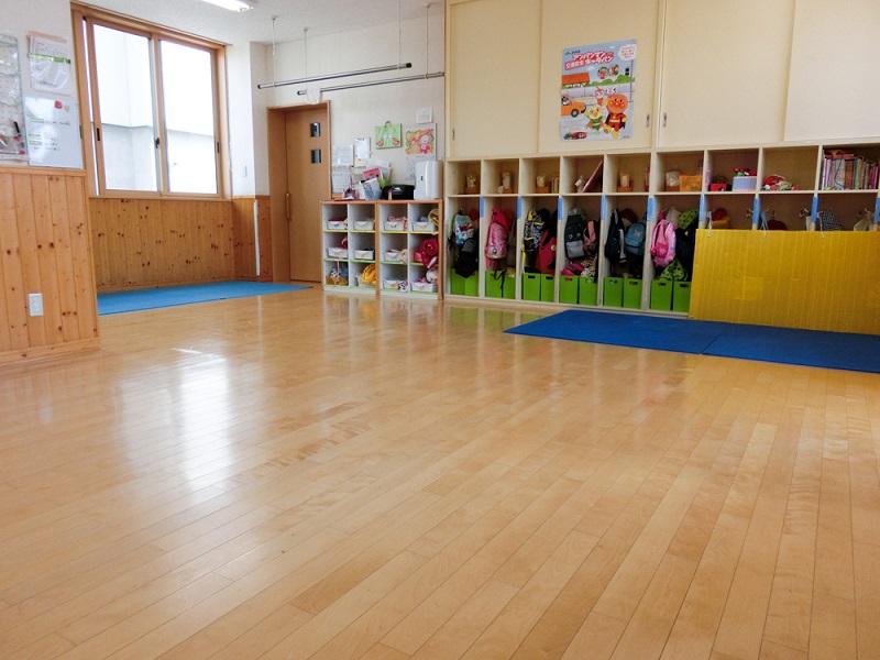 ままごとやブロックのコーナーと椅子に座っての活動のコーナーがあります。 -