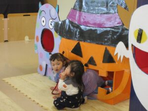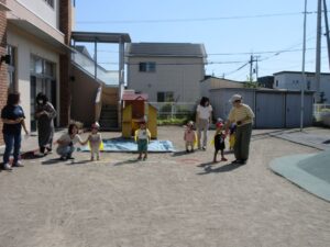こども園の園庭や支援センター室で「運動会ごっこ」を行いました🥇