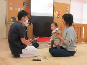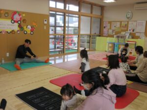 講師にMuku Mukuの髙尾夢雲氏をむかえ、お子さんと楽しくスキンシップをとりながらストレッチを教えてもらいました。「はいはいやジャンプをたくさんすると体と脳を同時に育むことが出来るのでおすすめです」と話されていました🤗