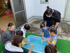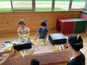 魚釣りやクレープ作りなど、お友達と一緒に楽しむ様子がたくさん見られていました。 少し涼しくなってきましたので、園庭遊びも楽しめますよ!ぜひ次回、お待ちしています!