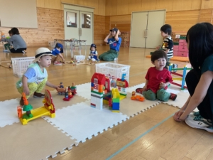 お遊戯室でたくさん遊んだ後は園庭へ。