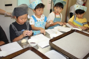 パン工場の方の話をしっかり聞いて、さあ、作ってみよう!