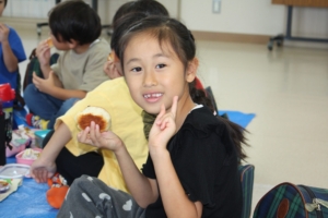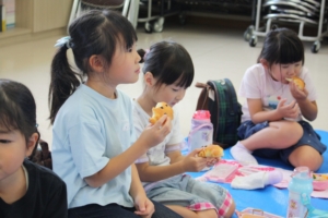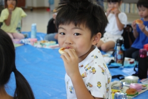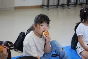ホカホカおいしいパンに出来上がり~♪みんなで昼食にひとつ食べました。