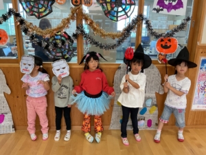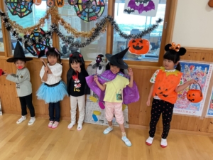 ほっぺちゃんがハロウィンを楽しんでいるのを見て、おひさまぐみも仲間入り!