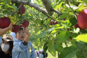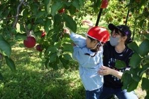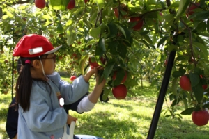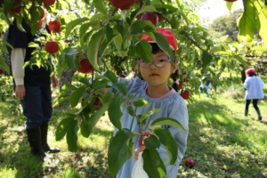 みんな、おいしいリンゴ選びに真剣でとっても嬉しそうでした。