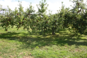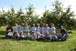 大きなリンゴの木がいっぱい!まずはリンゴ園の方に元気にごあいさつ。