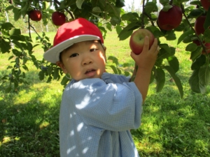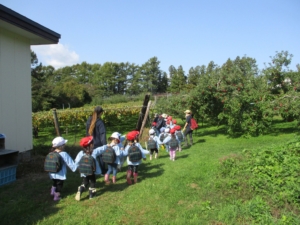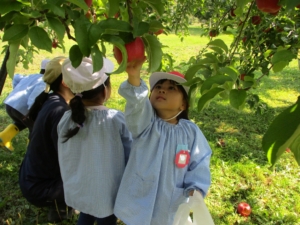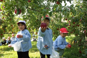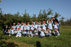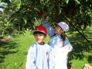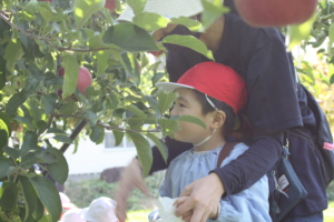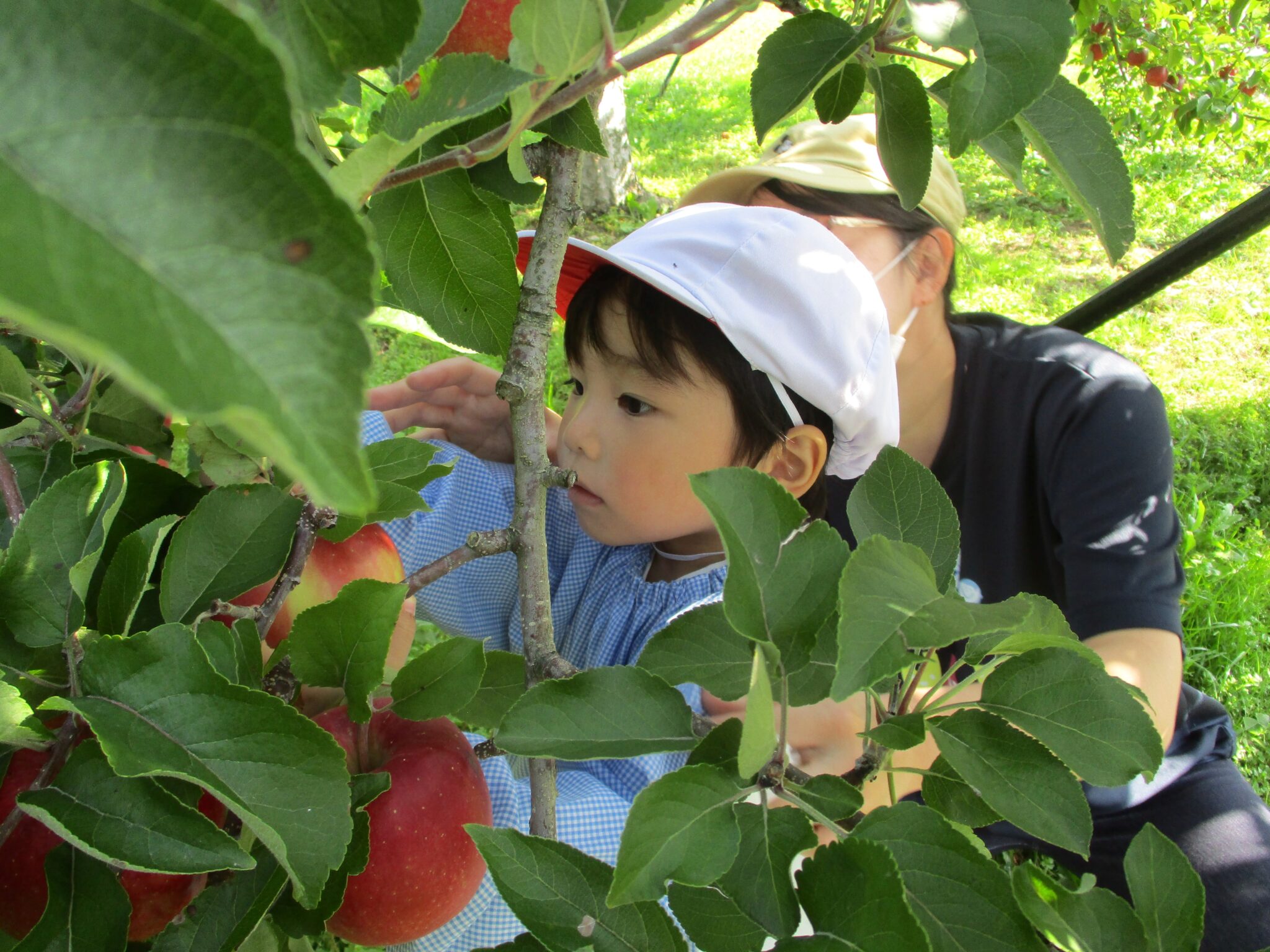 今日ははなぐみ・あおぞらぐみのお友達がりんご狩りに行ってきました! ぽかぽか暖かい良い天気の中、りんご狩りを楽しみました♪ 真っ赤なりんごはどこかな? み~つけた!