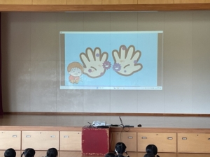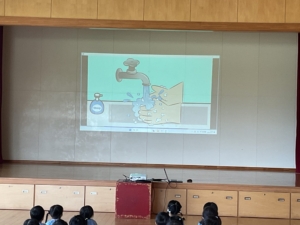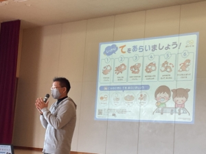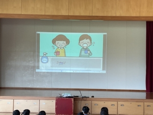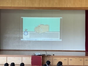 お部屋の水道には、手洗いの仕方のポスターを貼ってるね。それを見ながらしっかり洗おうね。