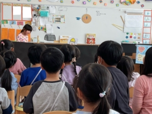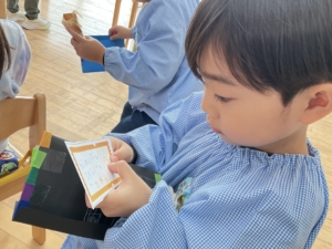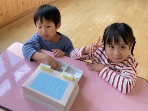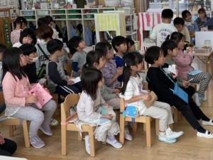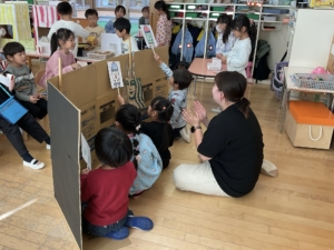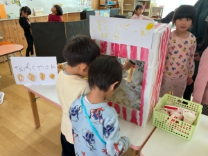 ペープサートが始まったよ!お客さんも楽しそう ステージ裏はこんな感じです。みんな一生懸命に演じてくれました🎵