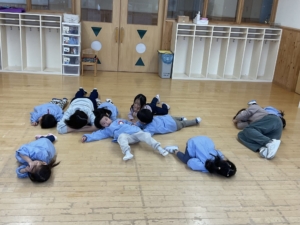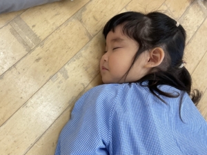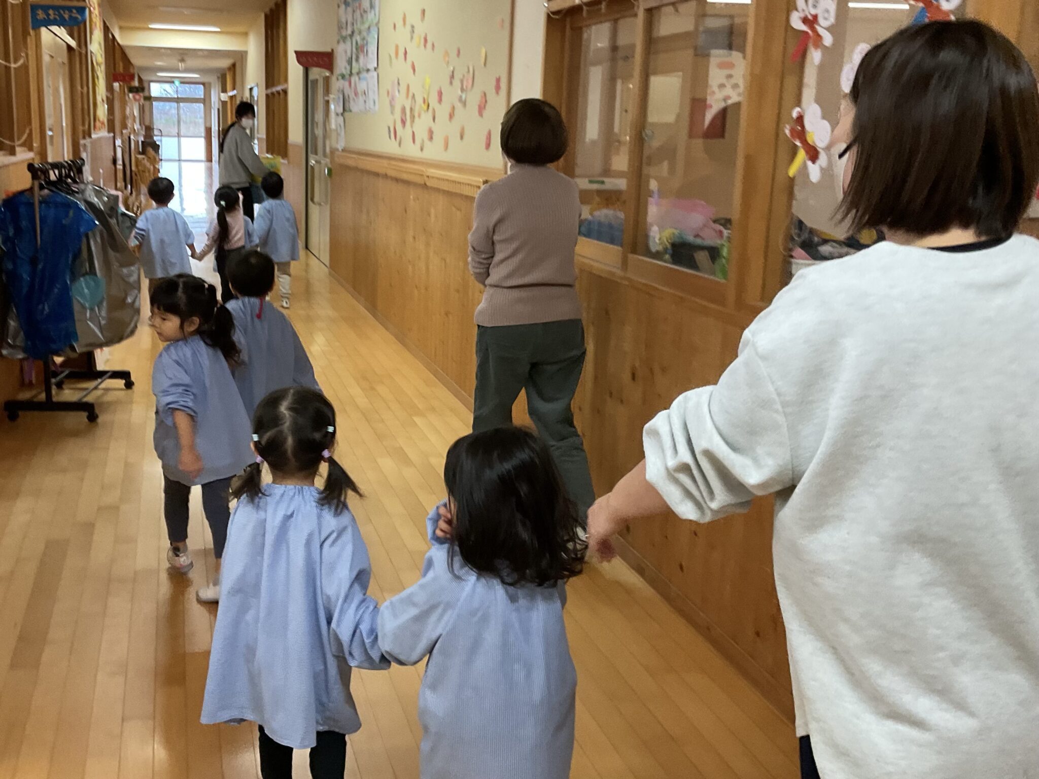 ことりぐみさんが、お遊戯会練習の間は一番奥の空き教室へ移動することになりました。他の組さんとと同じ部屋。水遊びの時はここでお着替えしたり、遊んだこともあったので初めてではありません。