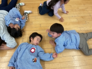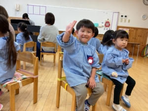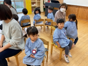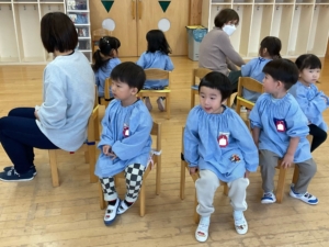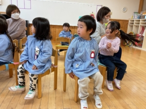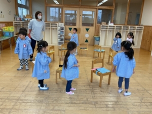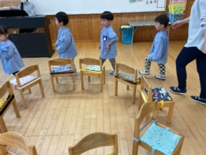空いてる椅子は見つけられたかな?初めての椅子取りゲームは、ドキドキしながらも上手に椅子を見つけて座っていました。