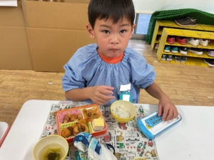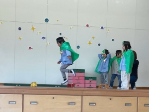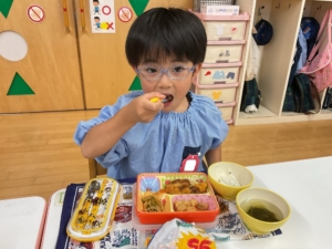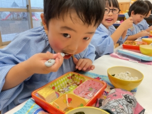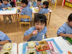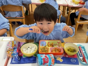 いつもはピーマンが苦手なお友達も、今日はピーマンパワーで頑張って食べていたようです!すごいぞ、ピーマンマン!