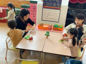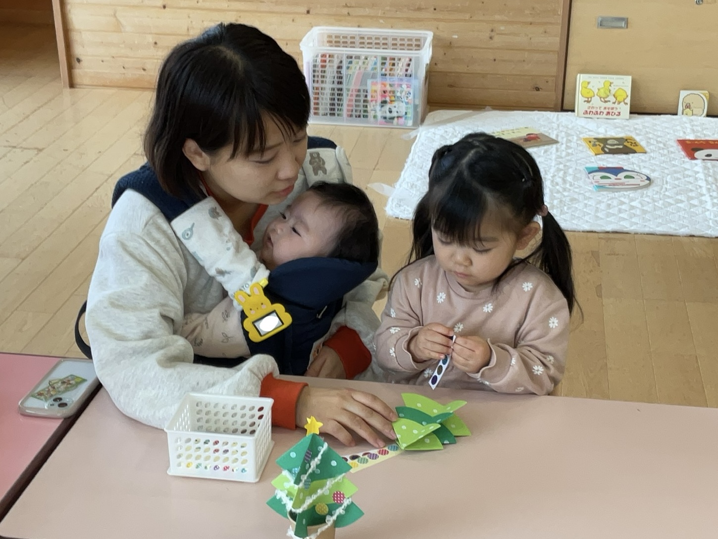今日はほっぺちゃんクラブの日でした。今回の制作はクリスマスツリー🎄です。 シールを貼って、素敵なツリーの出来上がり✨